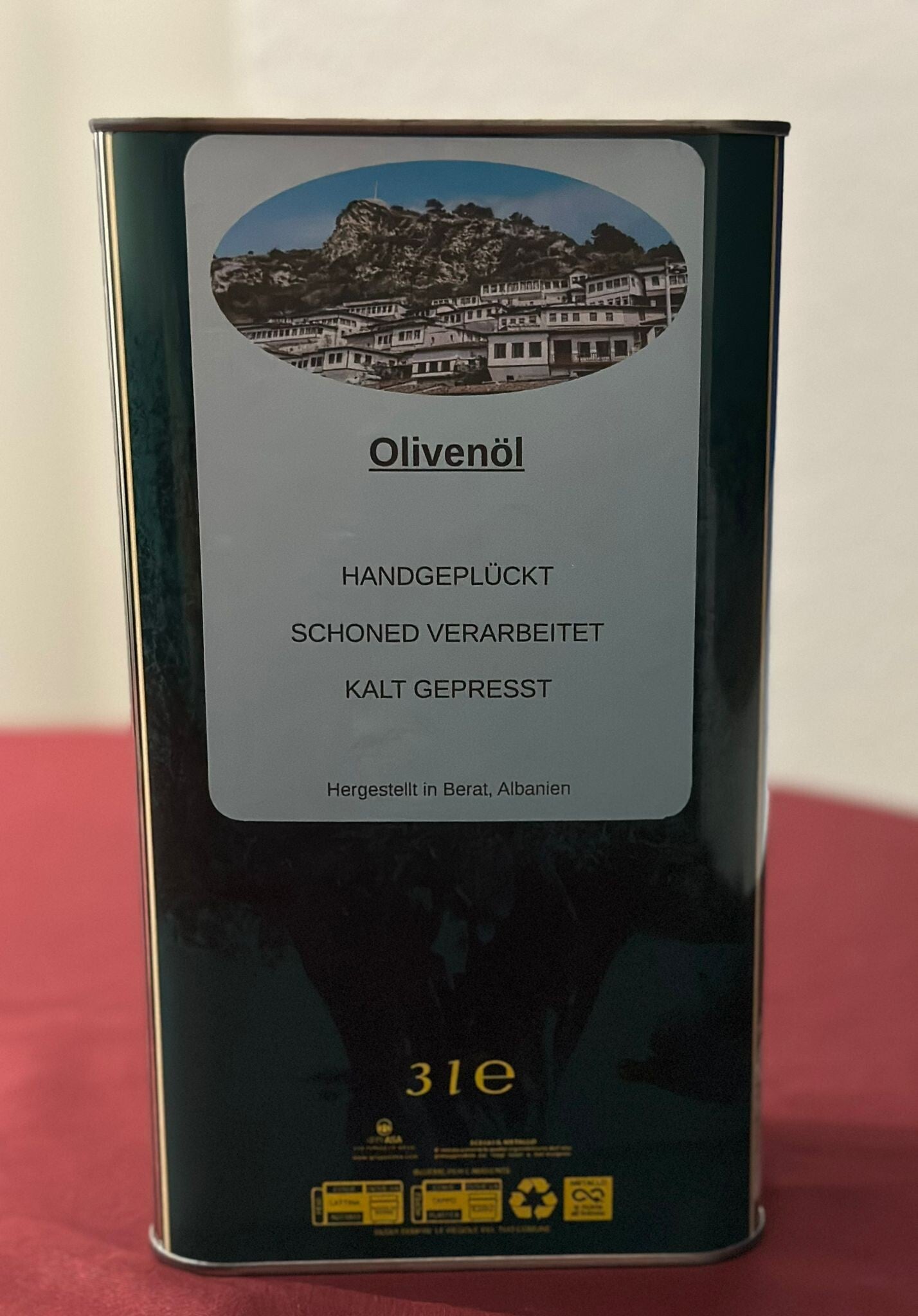 Oliven aus biologischem Anbau, handgeflügt und schonend gepresst. Zuletzt wird das Olivenöl gefiltert und in Glasflaschen abgefüllt.